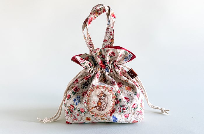 巾着ミニトートバッグ花柄『なぁに?』