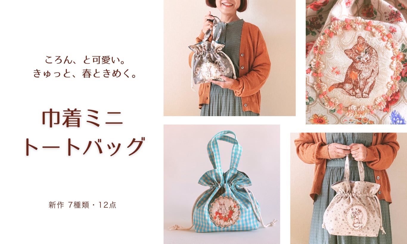 巾着ミニトートバッグ麻花柄『こうさぎ』