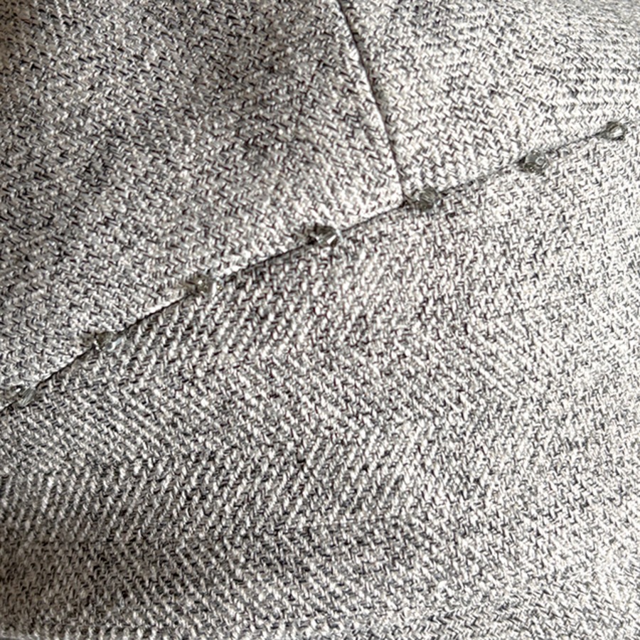 生地は淡いグレーのヘリンボーン。グレー・白・黒の細い糸で織られた柔らかな化繊素材で、シワになりにくく季節を問わずお使いいただけます。
