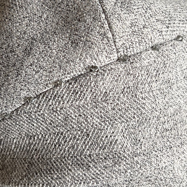 グレー、白、黒の細い糸でヘリンボーンが織られた生地。シワになりにくいので、使わない時にくしゃっと丸めても跡がつきません。
