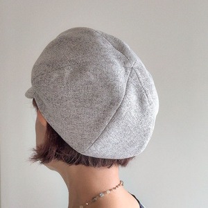 このキャスケットには、柔らかな雰囲気の淡いグレーの化繊生地を使用。