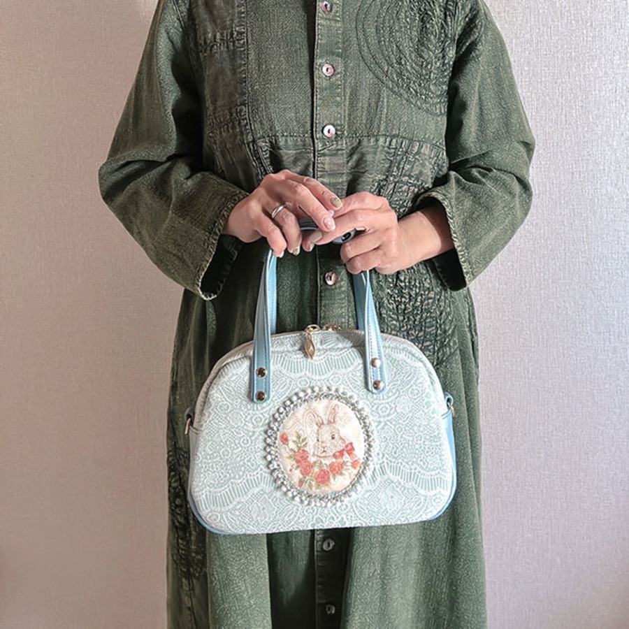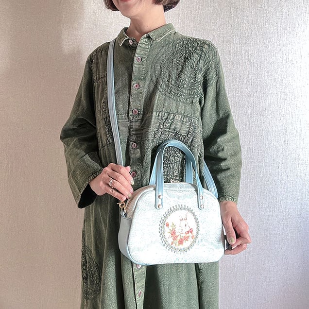ミニボストンバッグは中に貼った芯材も軽めのものを使っていますので、ショルダーベルトで斜めがけした時も、肩への負担は少なく気軽に持てるのが魅力的。