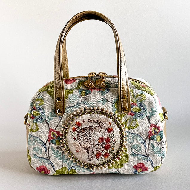 ■商品名/ 丸型ミニボストンバッグ『猫とコスモス』