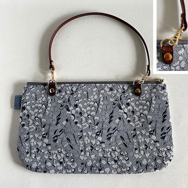 表地には紺色に鈴蘭の柄が織られている日本製の生地を使用しました。しっかりした生地です。