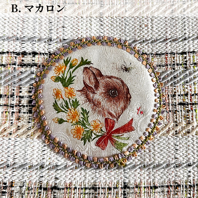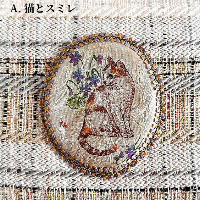 絵柄は「A. 猫とスミレ」または「B. マカロン(うさぎ)」からお選びください。