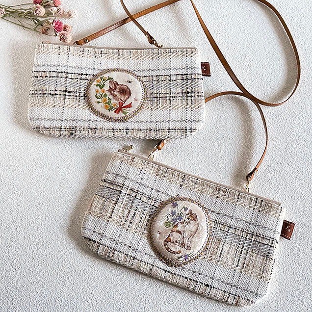 ぺたんこショルダーバッグ『猫とスミレ』or『マカロン』