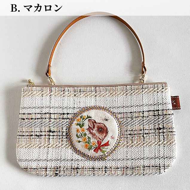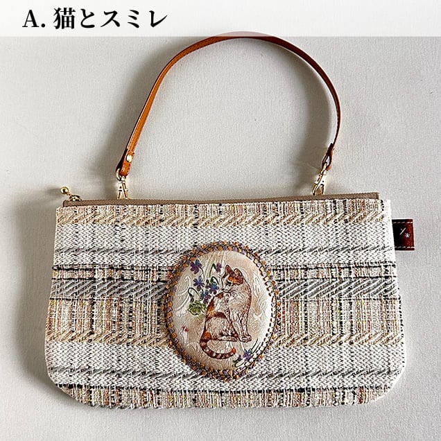 ■ぺたんこショルダーバッグ『A. 猫とスミレ』or『B. マカロン』