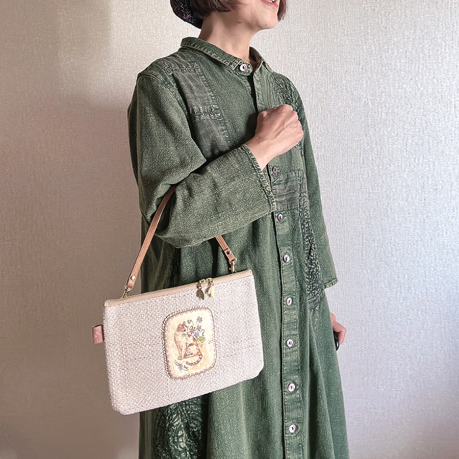やさしい色彩と物語のあるモチーフが魅力のタブレットミニバッグです。