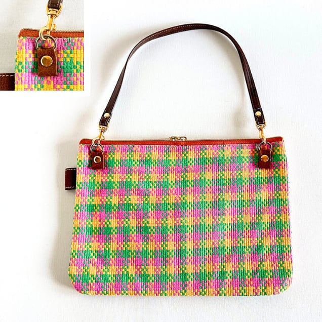 表地はイタリア製の上質な生地。ピンク・グリーン・イエローの3色で織られたツイード調のデザインが印象的です。