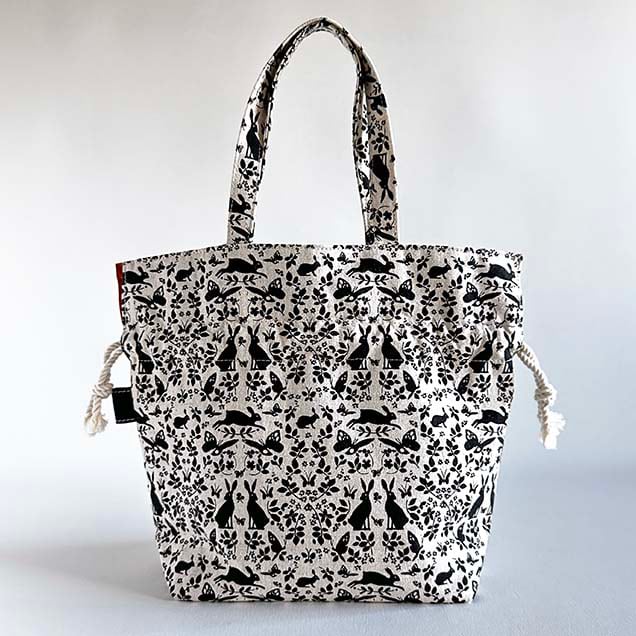 薄手の生地なので折りたたんで収納でき、紐を結ばずに使えば小ぶりのトートとしても活躍します。