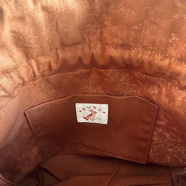 裏地はくすんだオレンジ色のコットンリネン。内ポケットが1口付いています。