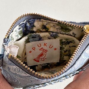 裏地はブルーのアンティーク花柄コットンツイル。仕切りポケットが1口付いています。