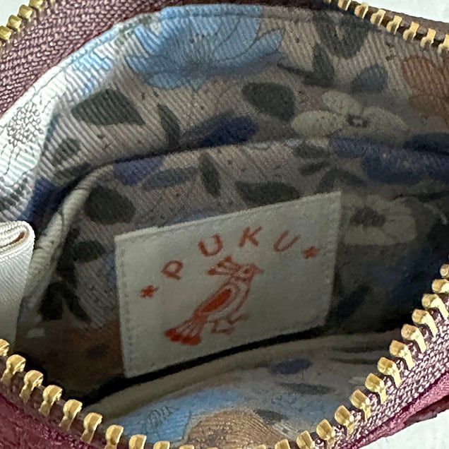 裏地はグレーに花柄がプリントされたコットンツイルです。仕切りになるポケットが一口付いてます。