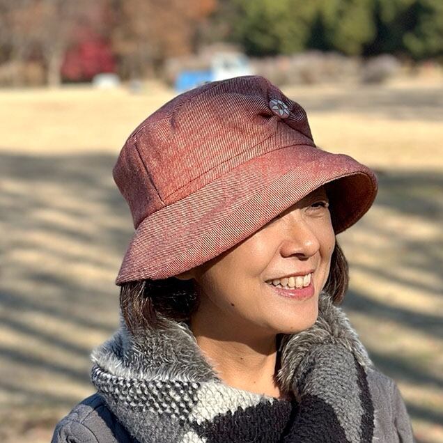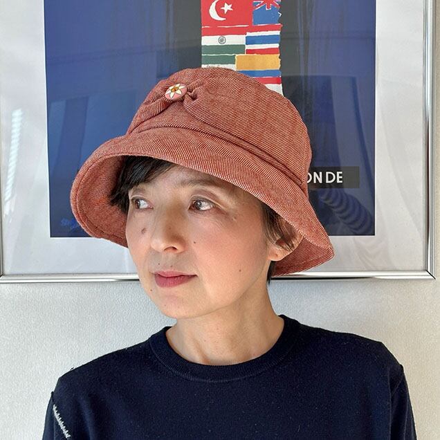 ハットが苦手な丸顔さんにも似合うようデザインしましたが、細面の方にもバランスよく被っていただけます。
