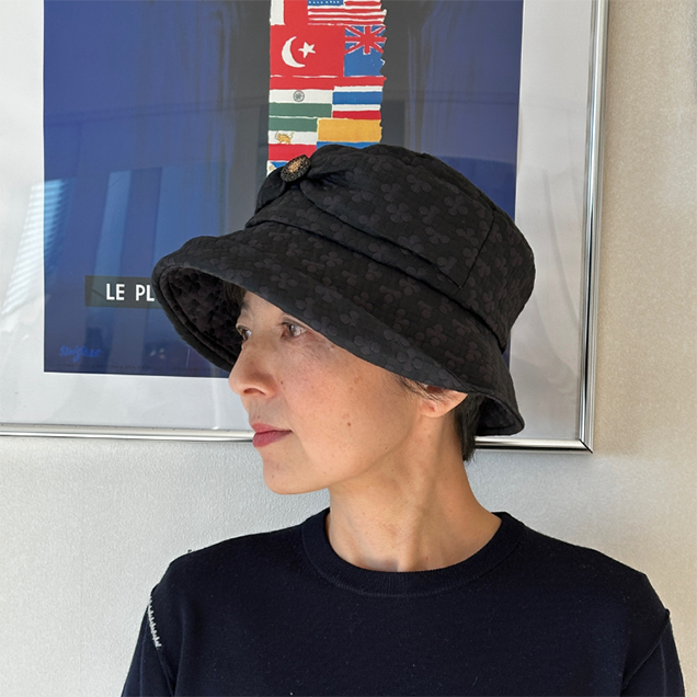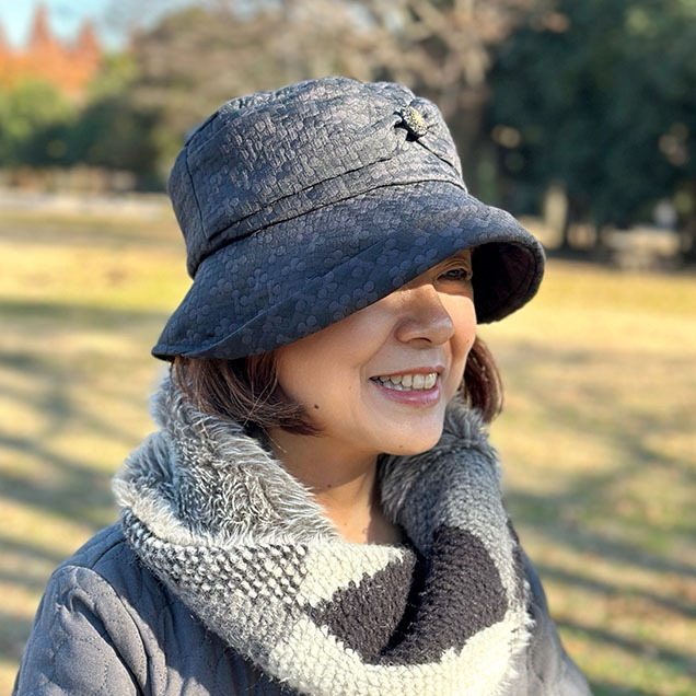 ハットが苦手な丸顔さんにも似合うようデザインしましたが、細面の方にもバランスよく被っていただけます。