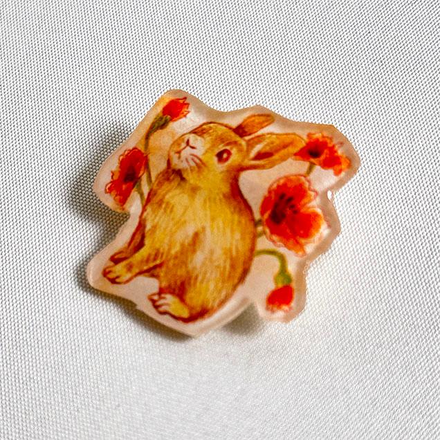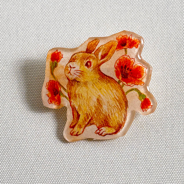 絵本みたいなブローチ『ひなげしとうさぎ』