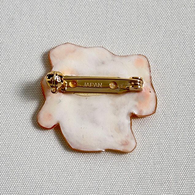 このブローチはイラストレーターのyuumo(森祐子)が色鉛筆で描いたオリジナルのイラストを元にプラバンで製作しています。