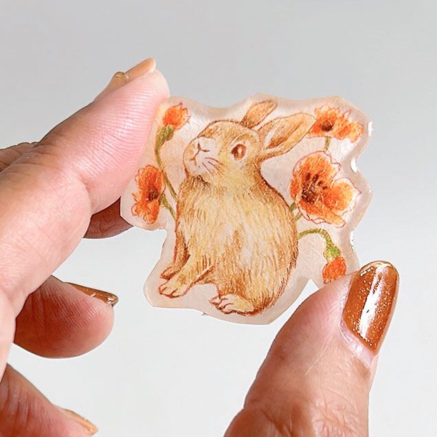 イラストレーター yuumo(森祐子)が色鉛筆で描いた原画をもとに、プラバンで制作。
