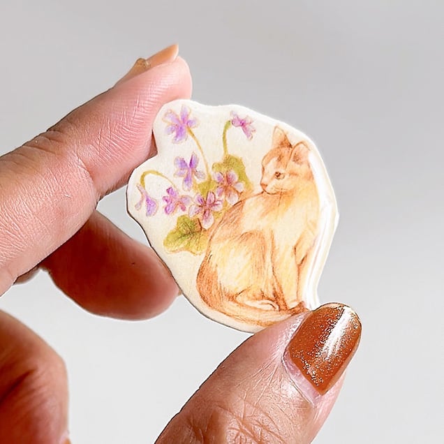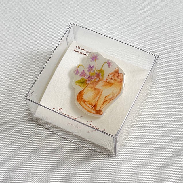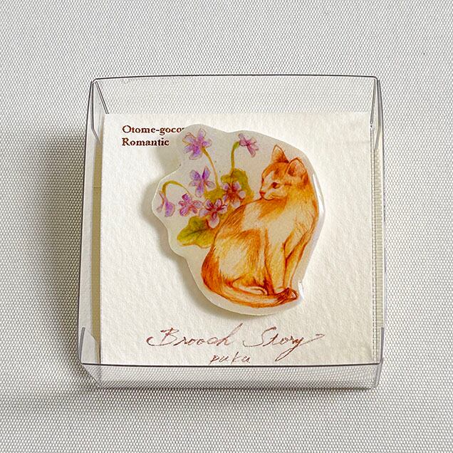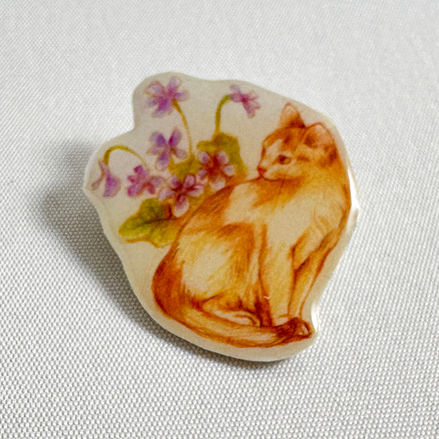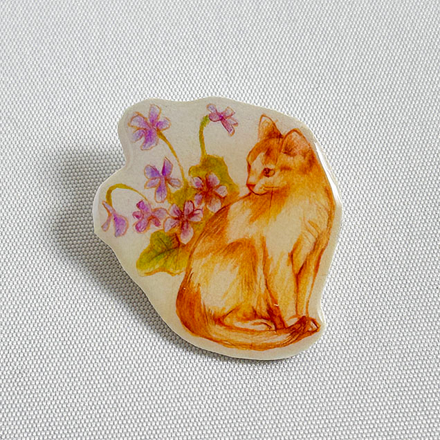 絵本みたいなブローチ『猫とスミレ』