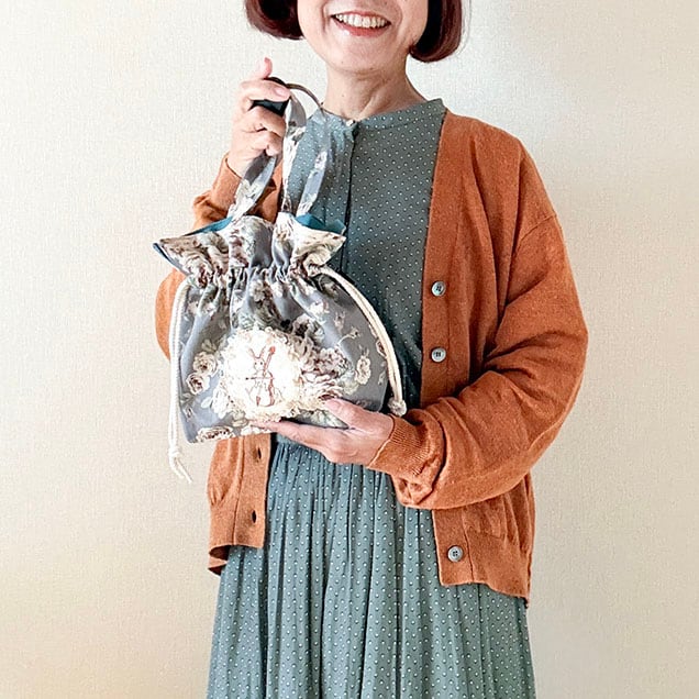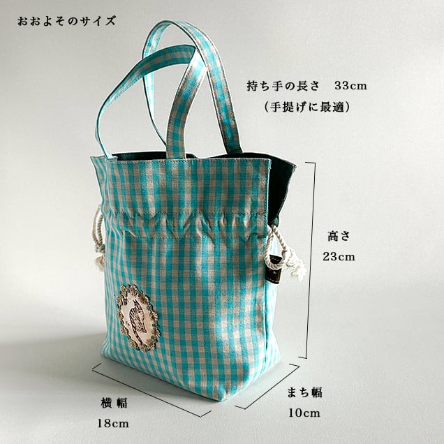巾着ひもを結ばない時は普通のミニトートバッグとしてお使いいただけます。