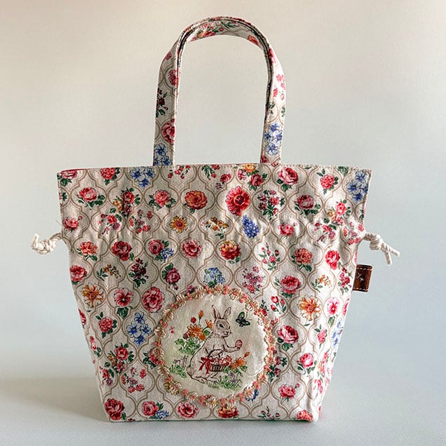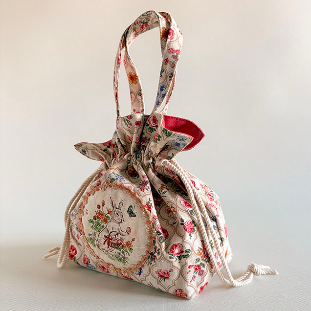巾着ミニトートバッグ花柄『春待ちうさぎ』