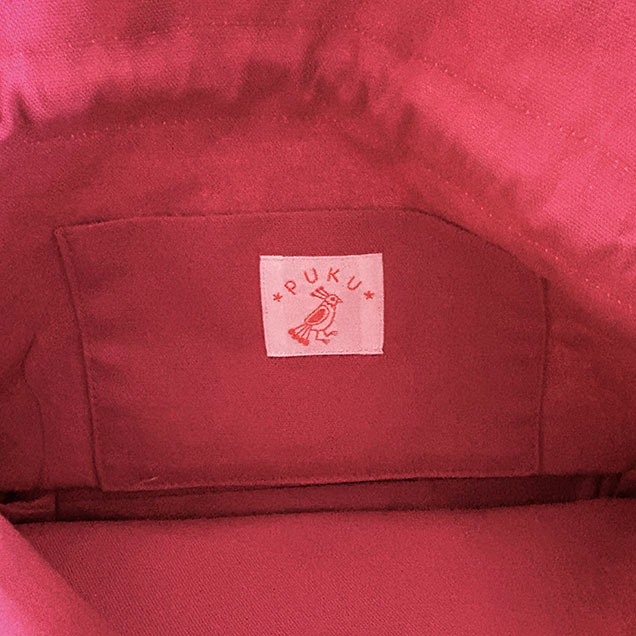裏地はくすんだローズピンクのコットンリネンを使用しました。内ポケットは一口です。