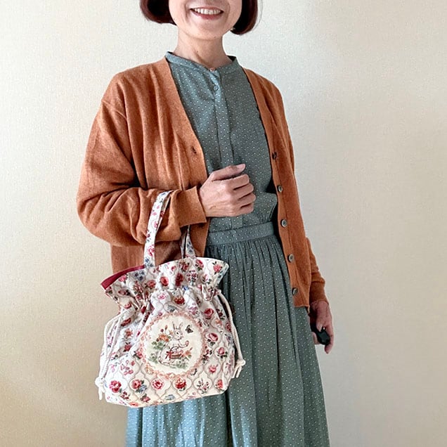 巾着ひもを結ばない時は普通のミニトートバッグとしてお使いいただけます。