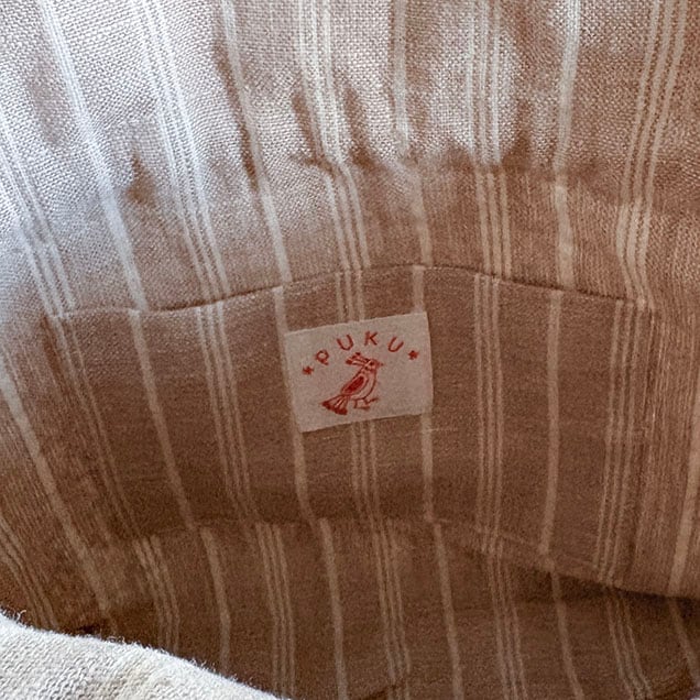 マチは10cmあってたっぷりで、巾着の紐をぎゅっと絞ったら貴重品を入れても安心です。