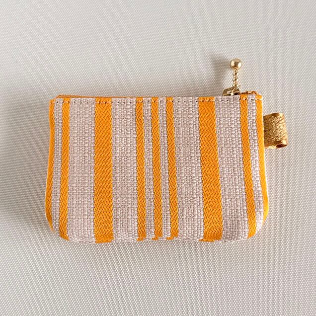 生地はイタリア製。麻のような色の化繊に元気の出るビタミンイエローで立体的にストライプが織られています。